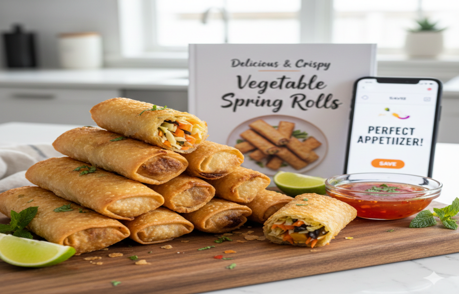 Serve the vegetable spring rolls hot with your favorite dipping sauce, such as sweet chili sauce or soy sauce with a squeeze of fresh lime juice. These crispy spring rolls are perfect for snacking, appetizers, or as a side dish to complement your main course.
